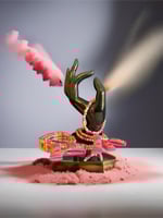 Pink, yellow, and white bead bracelet with a Sweet smart charm. Sold separately.